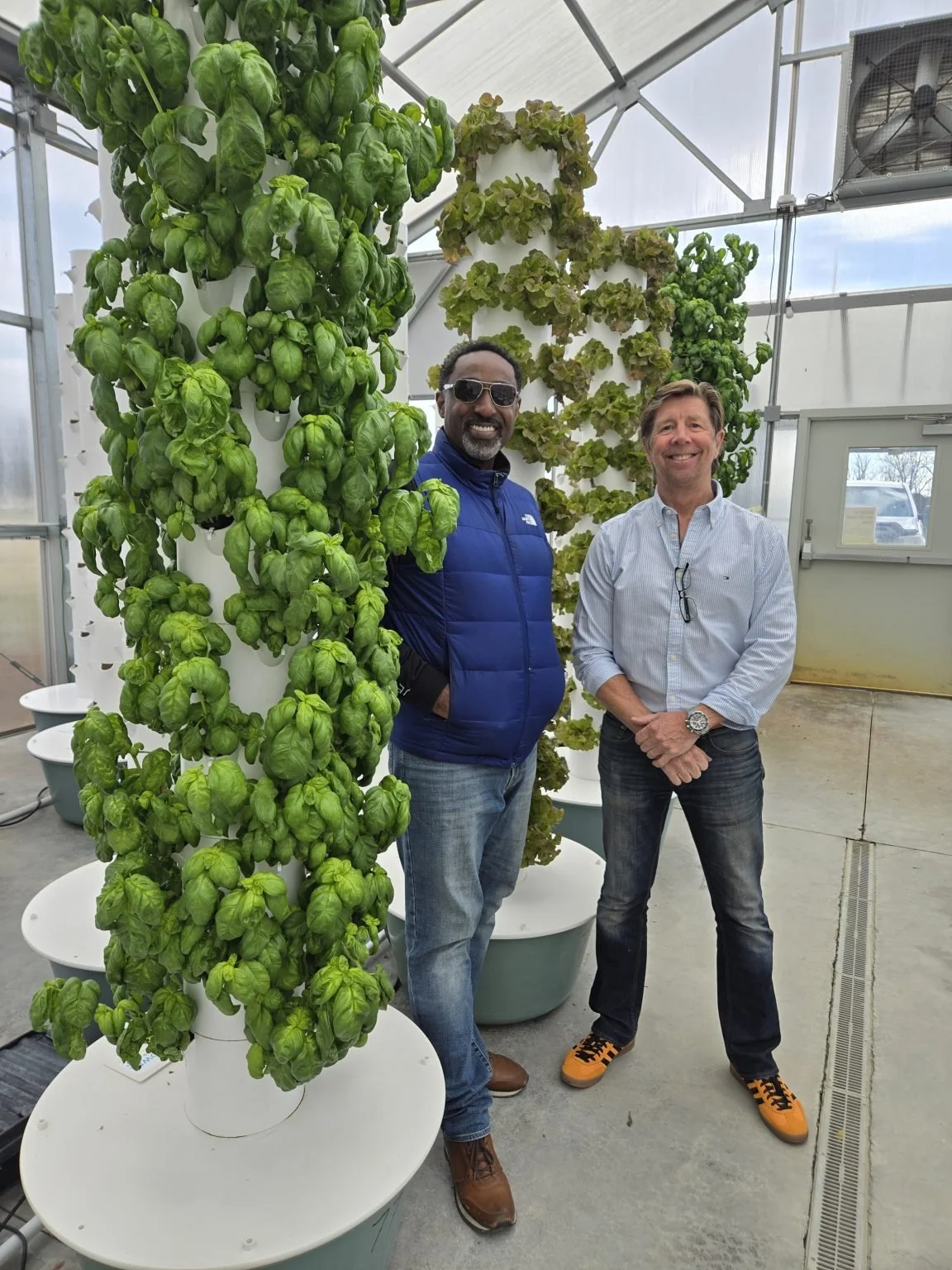 The stark contrast between the traditional farmland available in Grand Cayman and the advanced greenhouse farming techniques employed by partners like Cleveland Julien in North Carolina highlights the transformative potential of this project. The first photo depicts traditional farmland, which underscores the challenges of conventional agriculture in the region. In contrast, the second photo, showcasing Cleveland Julien visiting a sophisticated greenhouse farm in North Carolina, illustrates the possibilities of modern, efficient farming practices.